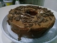 Bolo De Chocolate com Cobertura de ganache de Leite de Coco e raspas de chocolate 50%